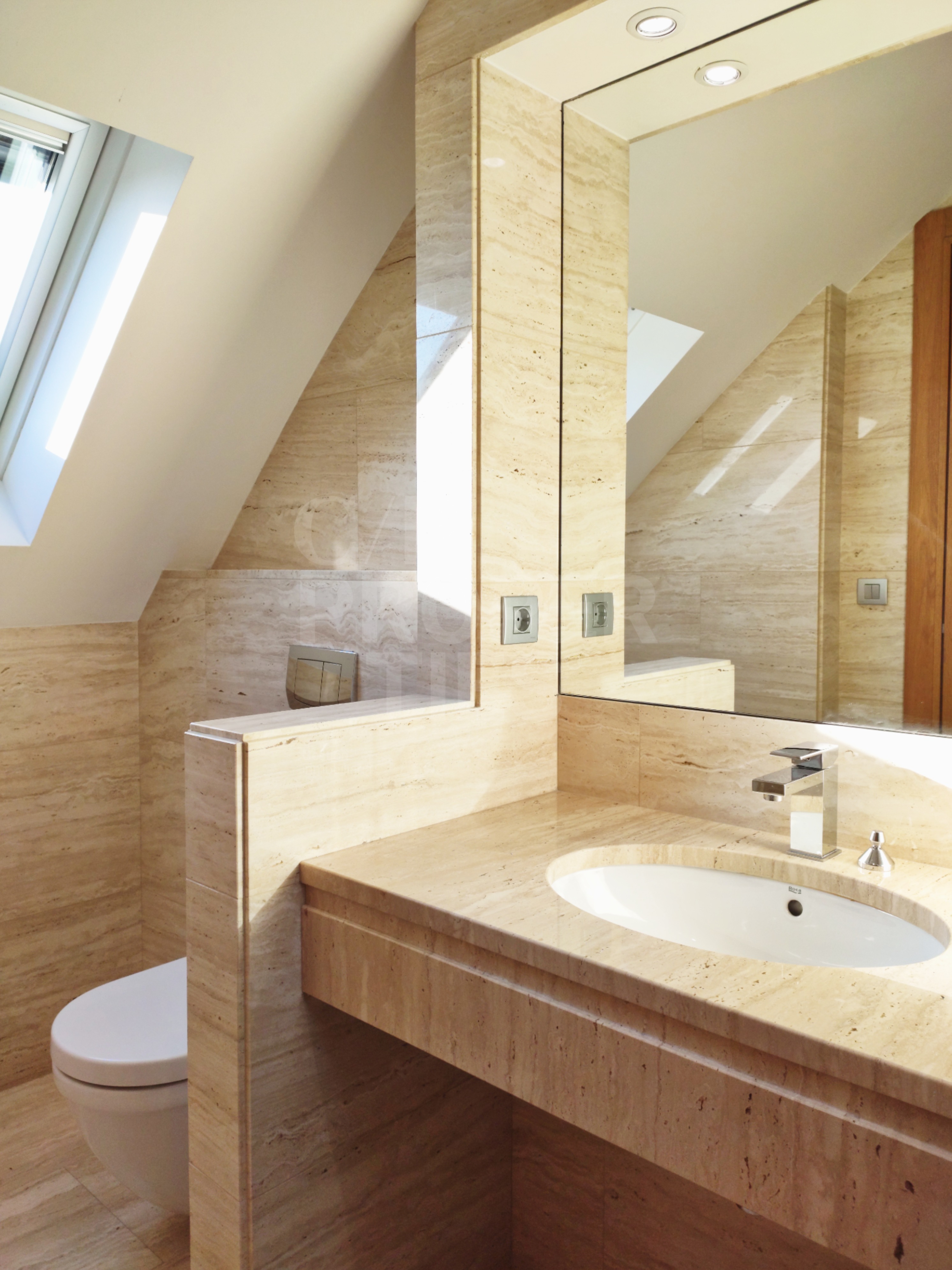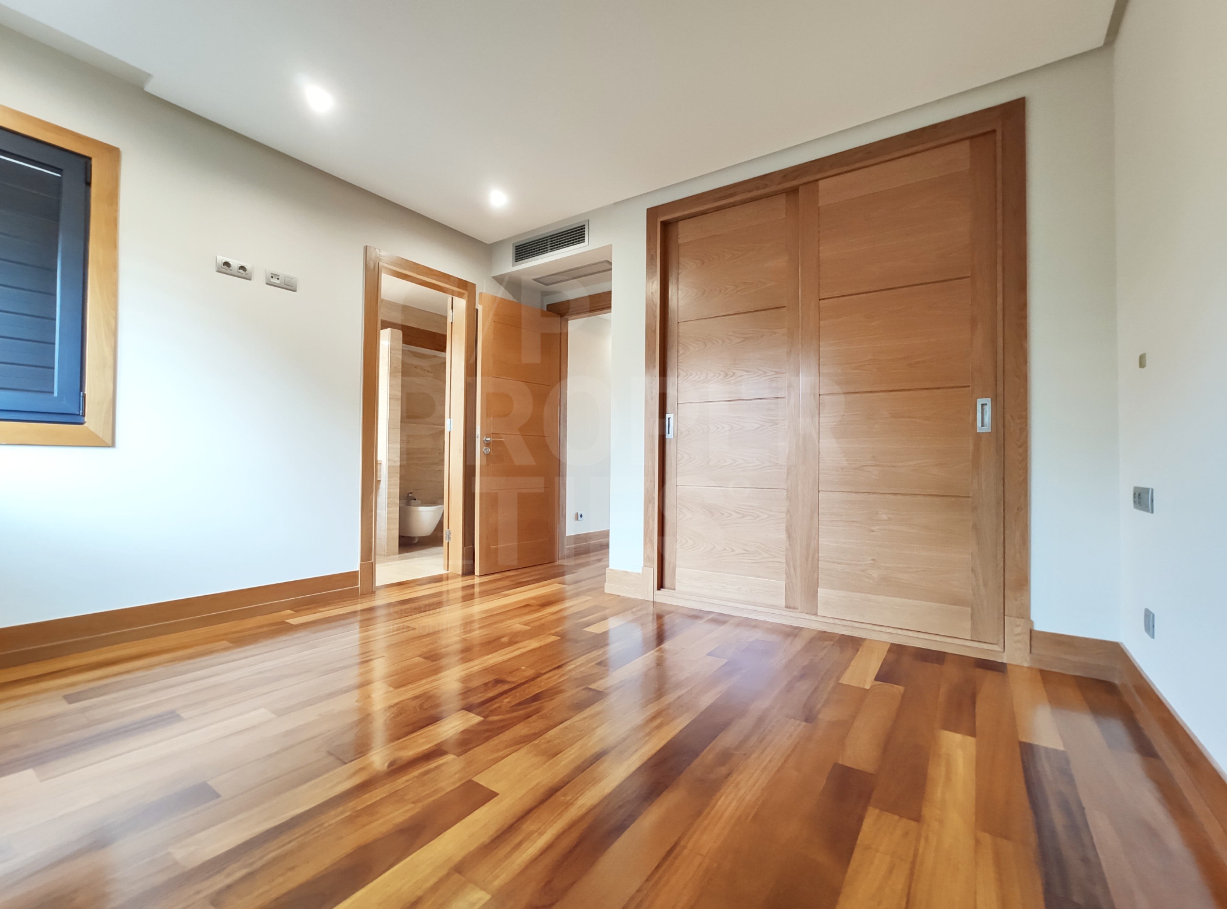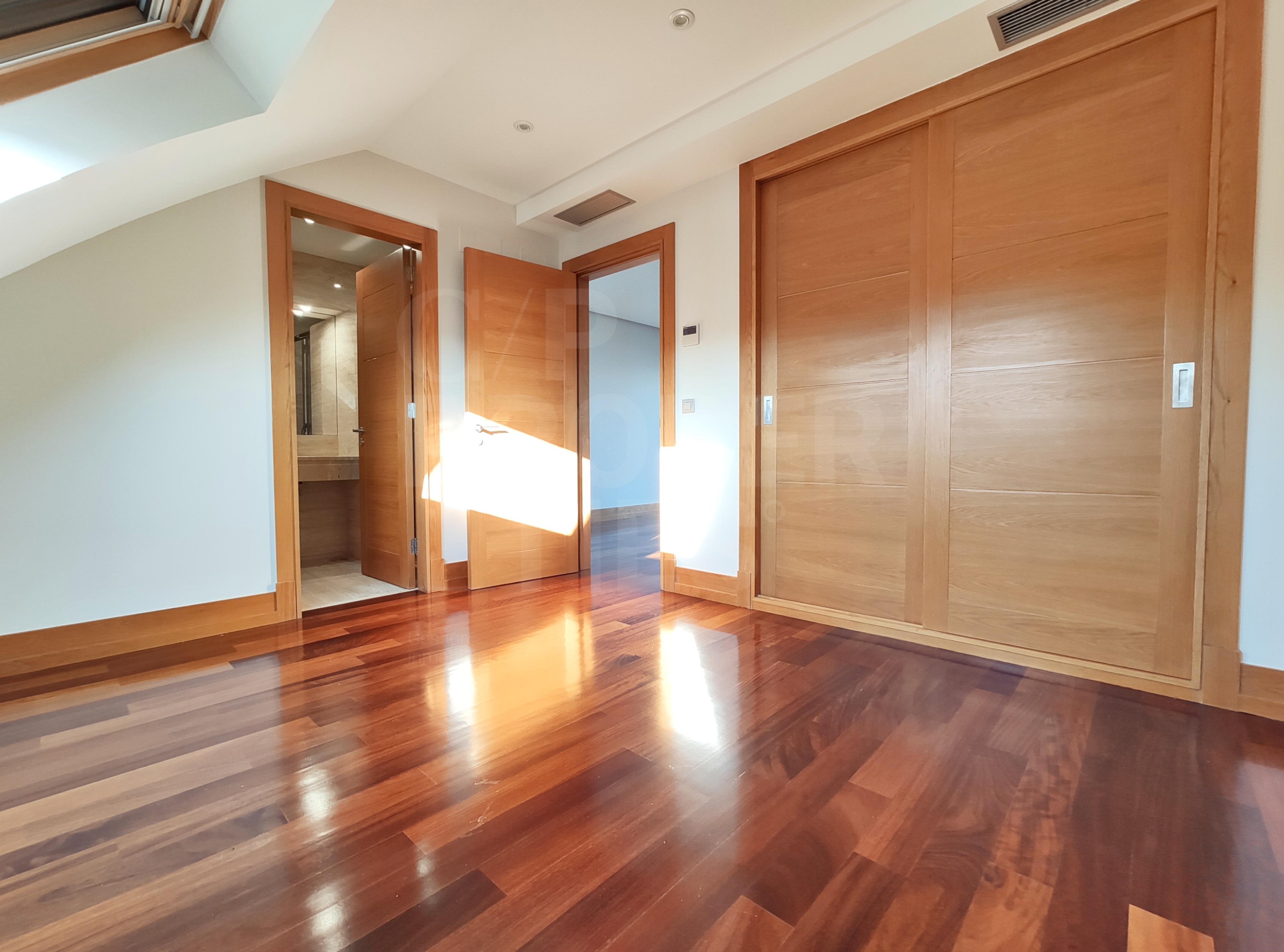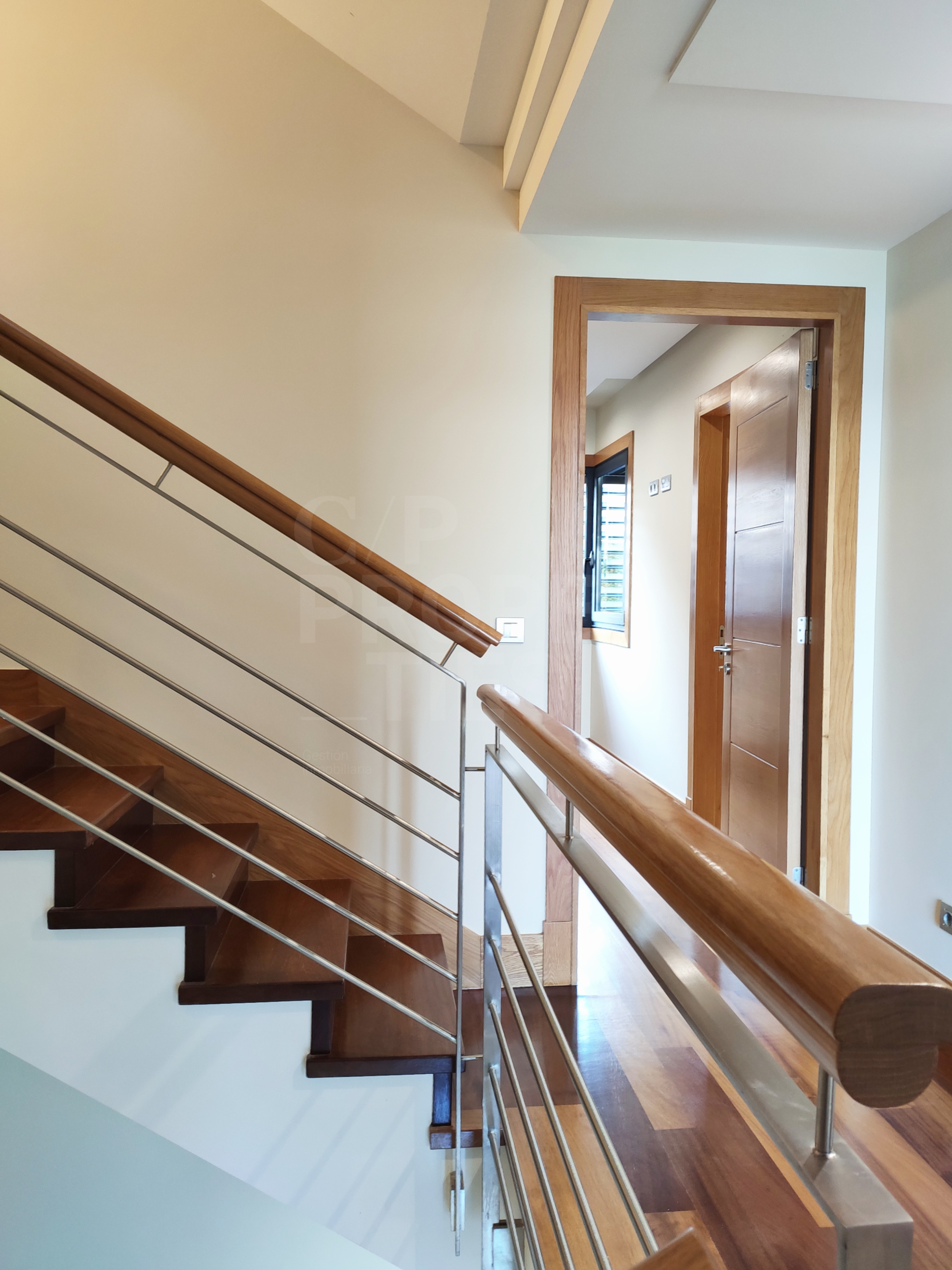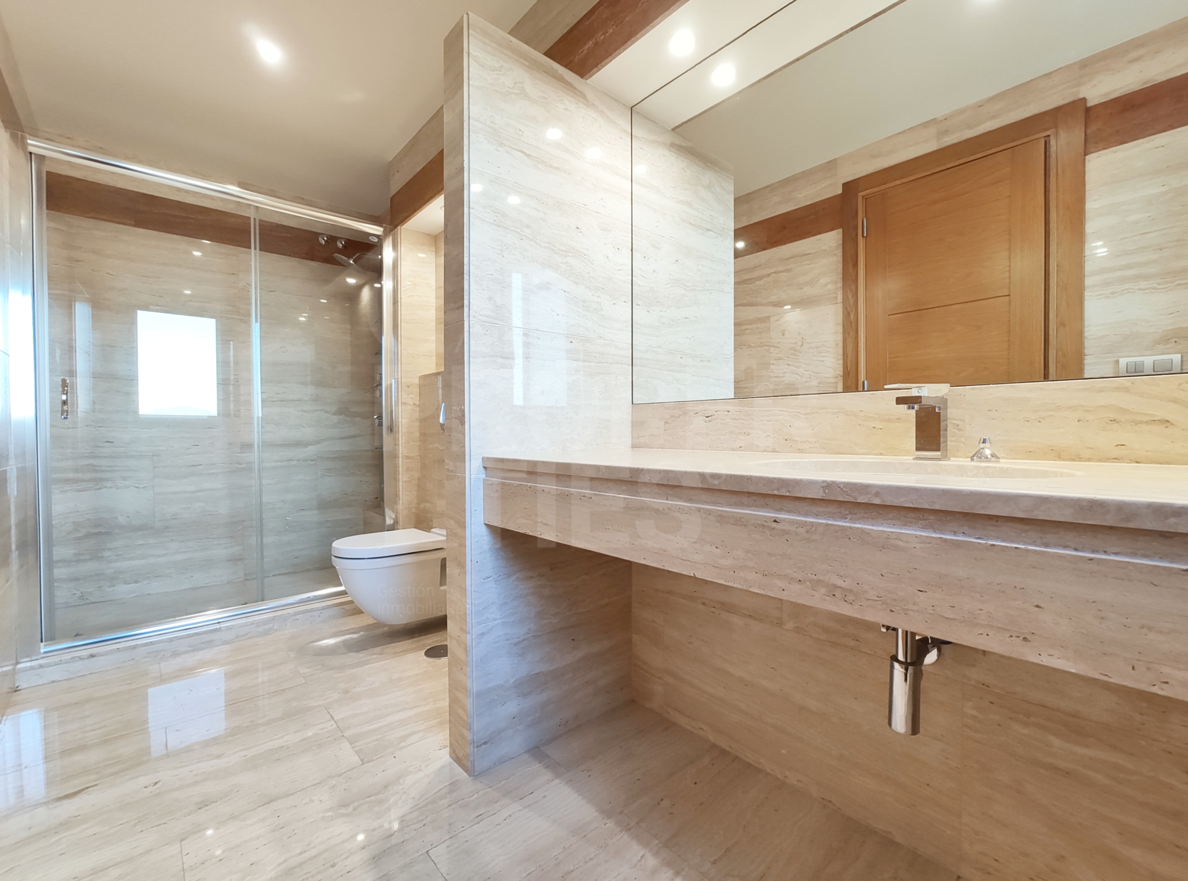 En la primera y segunda planta se encuentran cuatro dormitorios amplios, con armarios espaciosos en cada uno de ellos y con cuartos de baño en mármol travertino privados completos con plato de ducha y bidé.