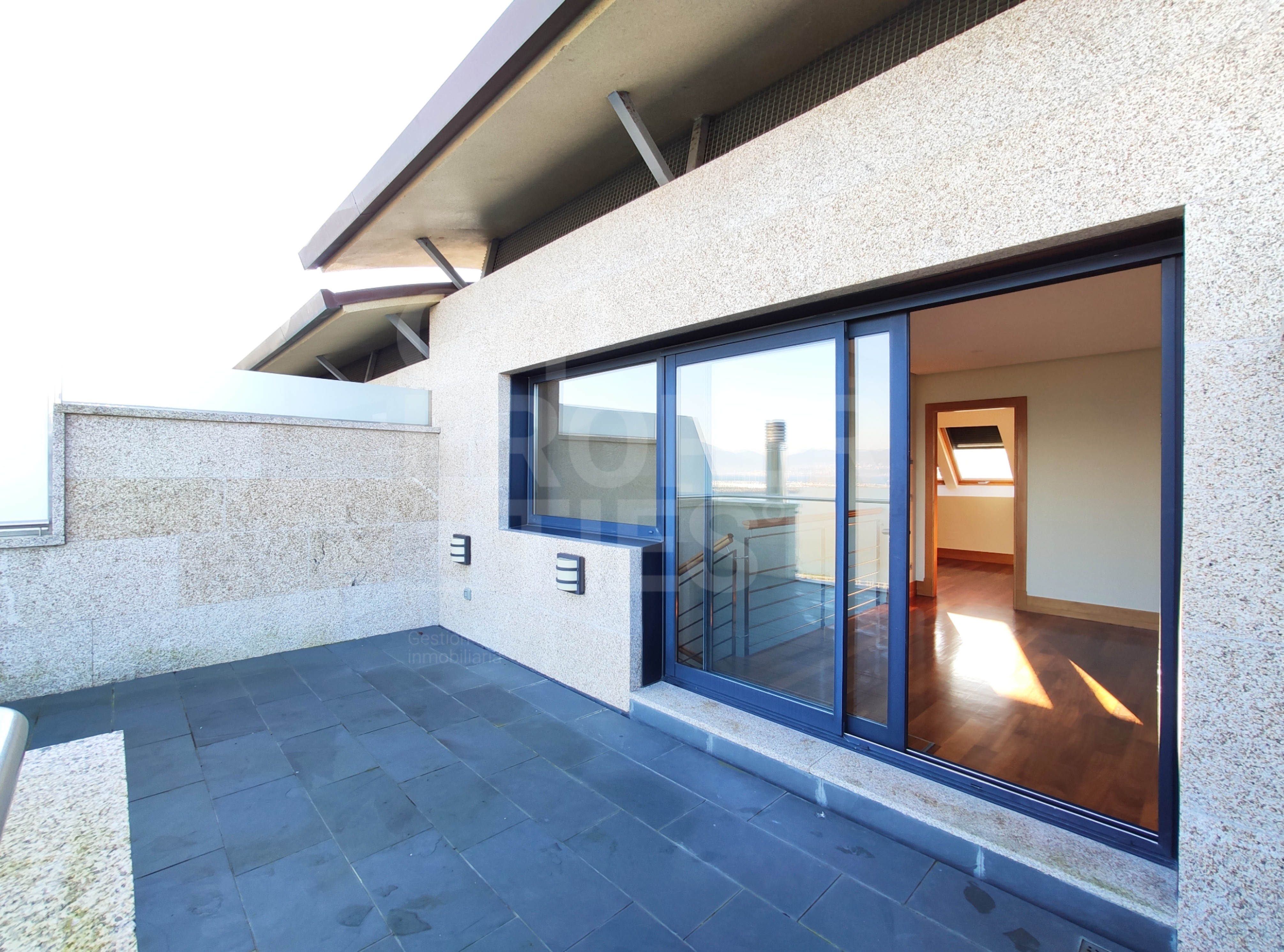 En la última planta existe un hall, un dormitorio en forma de buhardilla muy acogedor, con ventana en velux, y un cuatro de baño con plato de ducha. Además cuenta con una terraza grande exterior donde se aprecian vistas a la ría y a la playa.