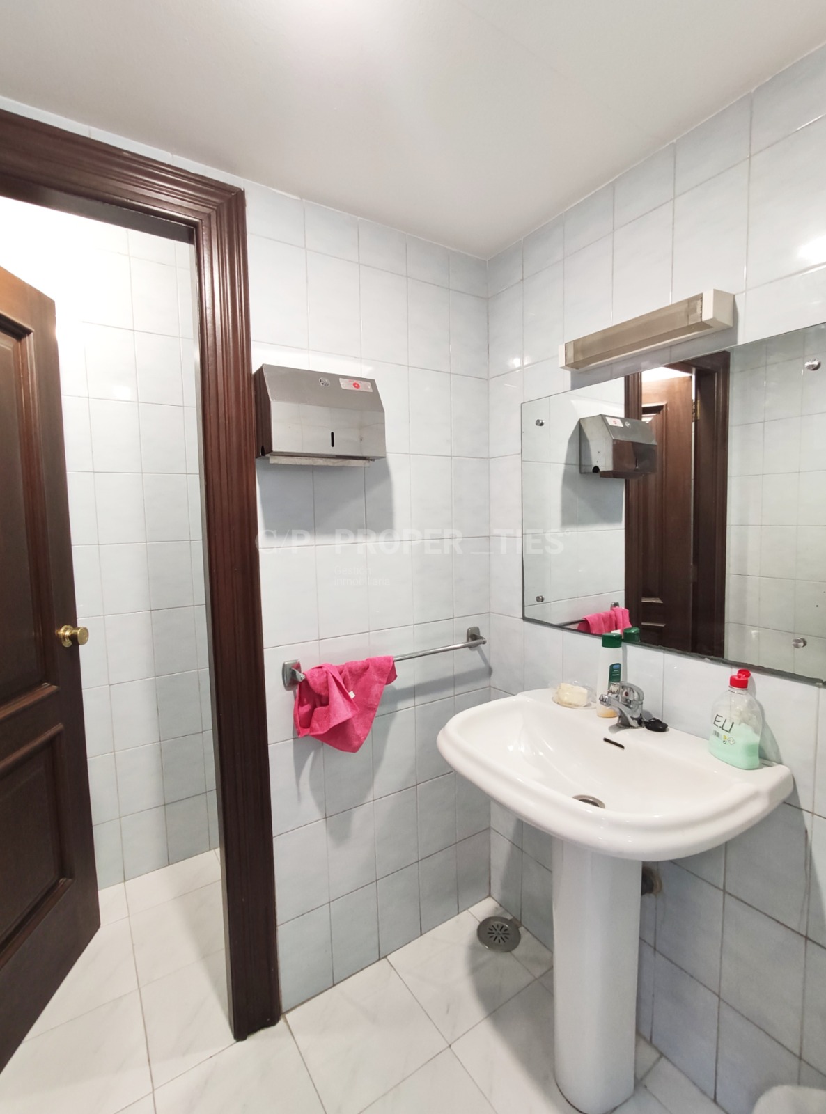 Dispone de 55 m2 construidos, con una distribución separada con tabiques. Cuenta con cuartos de baño para ambos sexos, los cuales se comparten con el resto de oficinas de la misma planta.