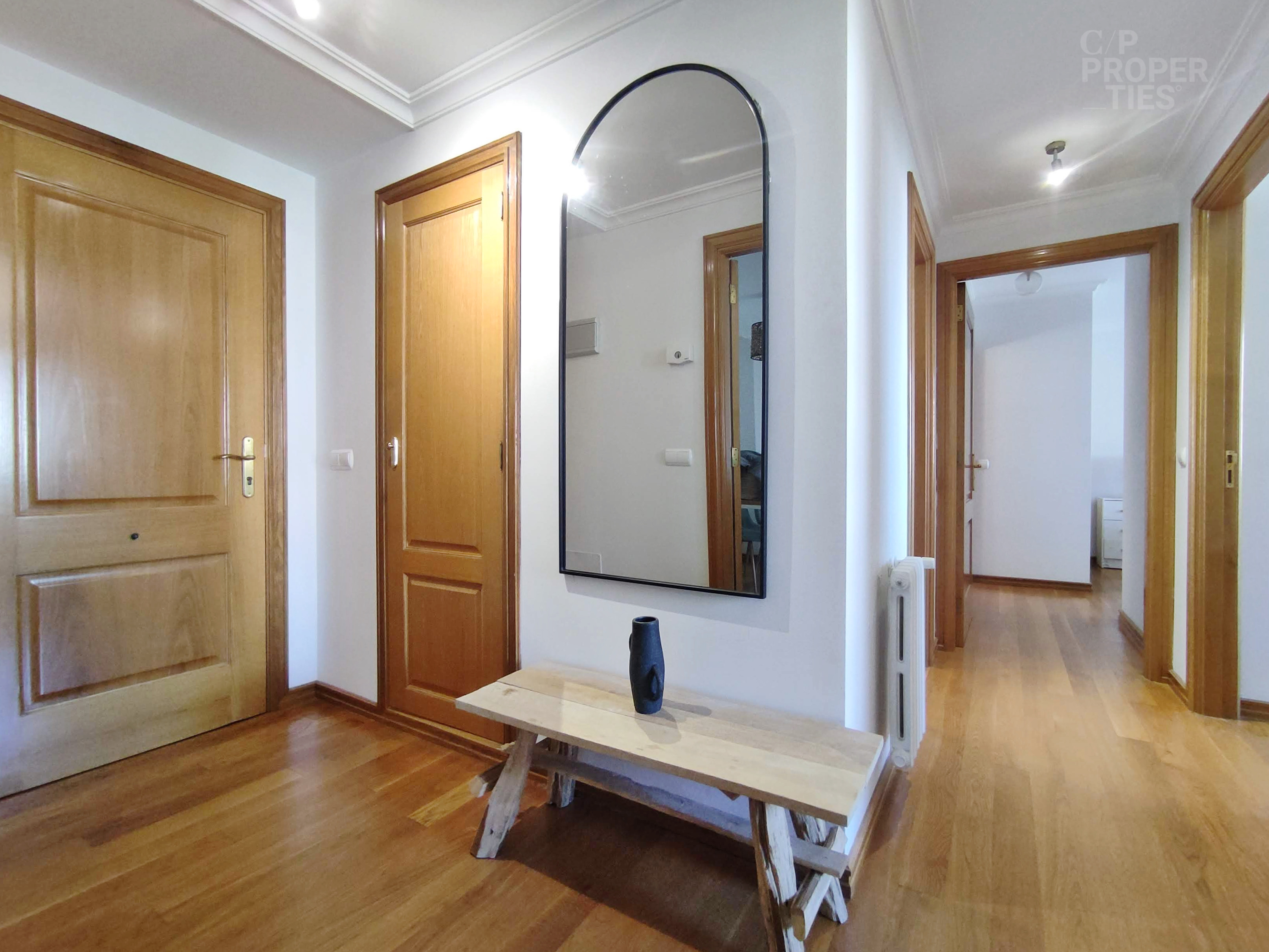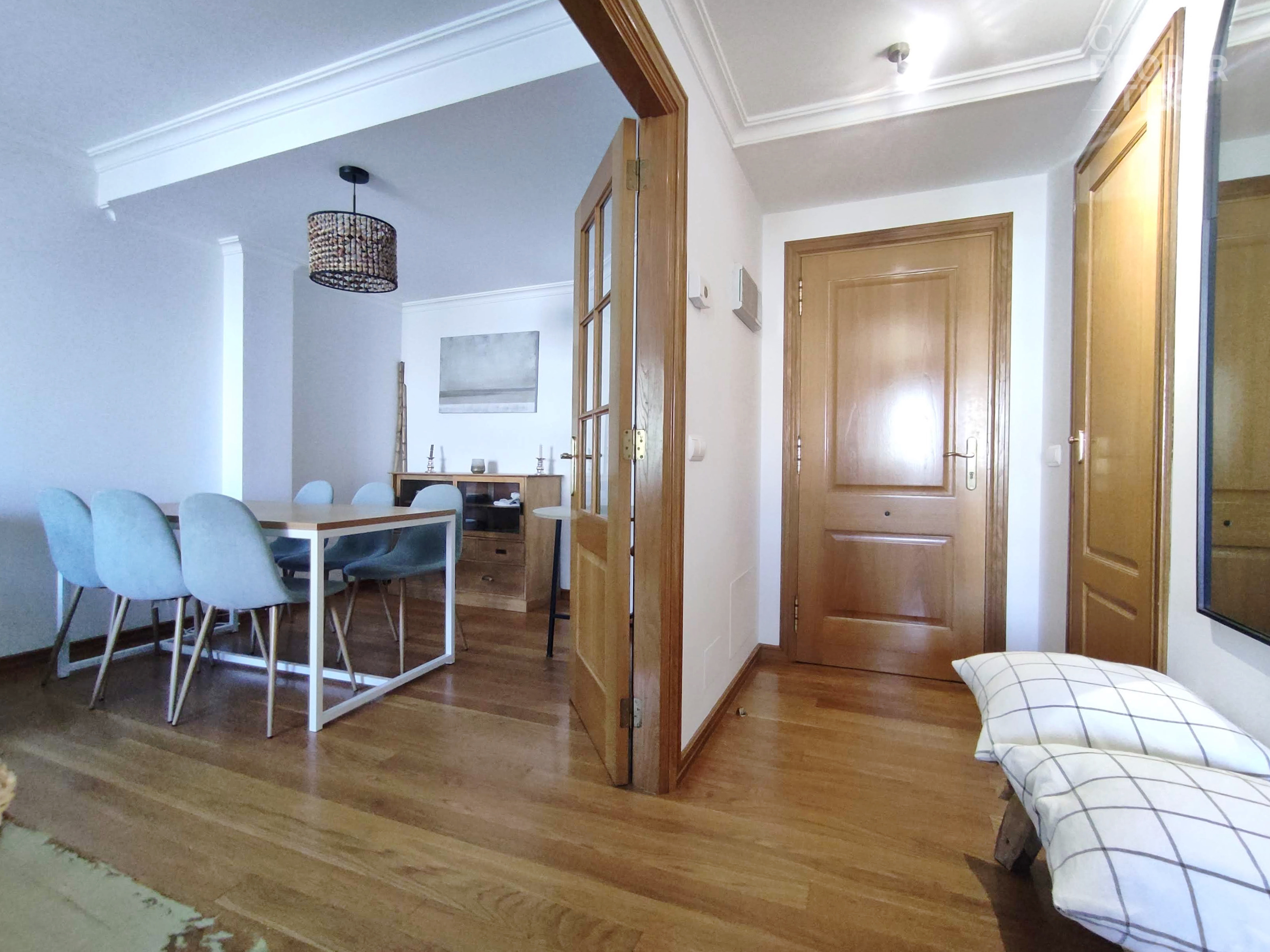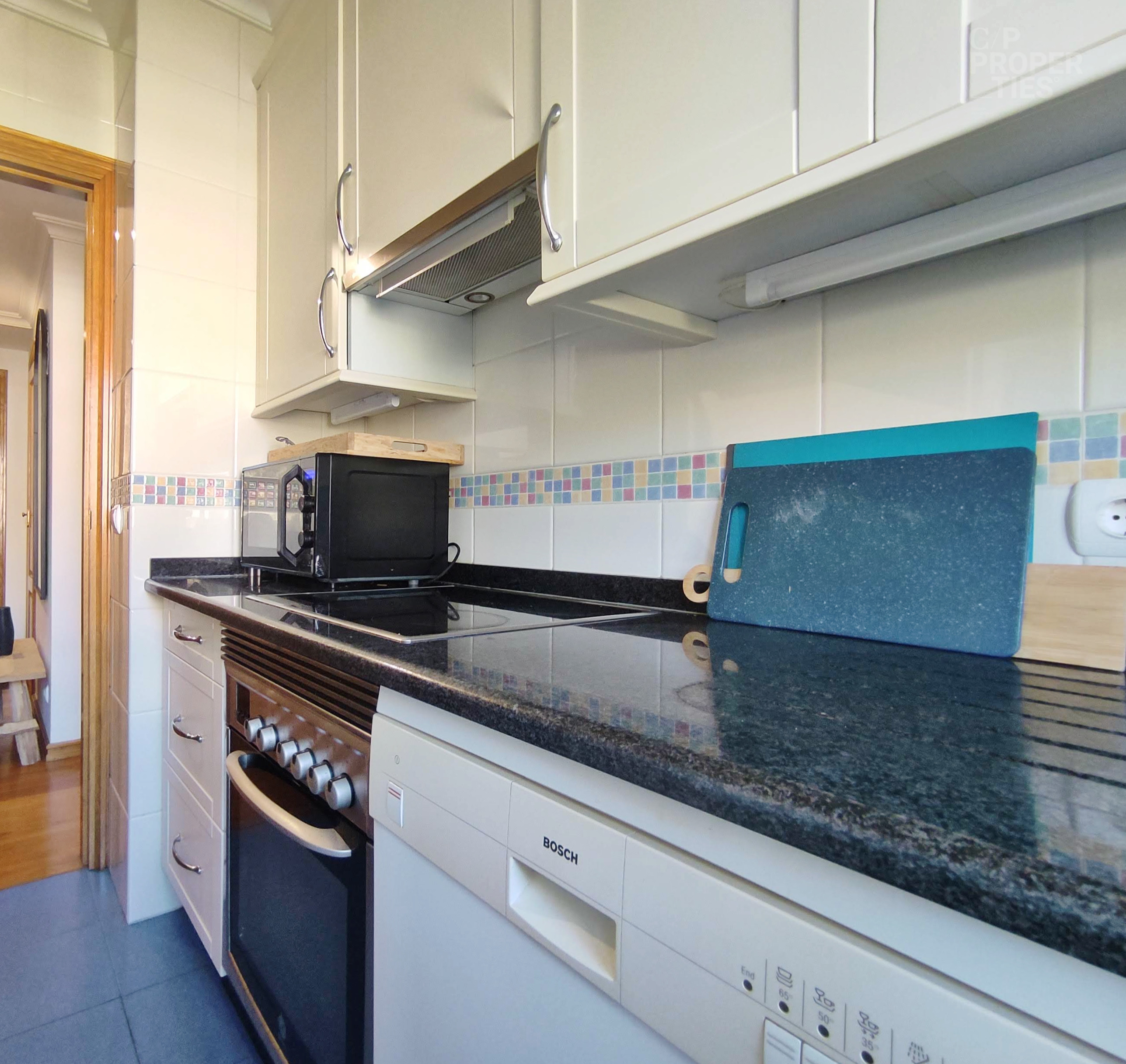 Dispone de 80 m2 útiles, distribuidos en un amplio salón comedor; una cocina amueblada y equipada con electrodomésticos, dos cuartos de baño completos (uno de ellos con zona de lavandería), y dos dormitorios independientes con armarios empotrados.