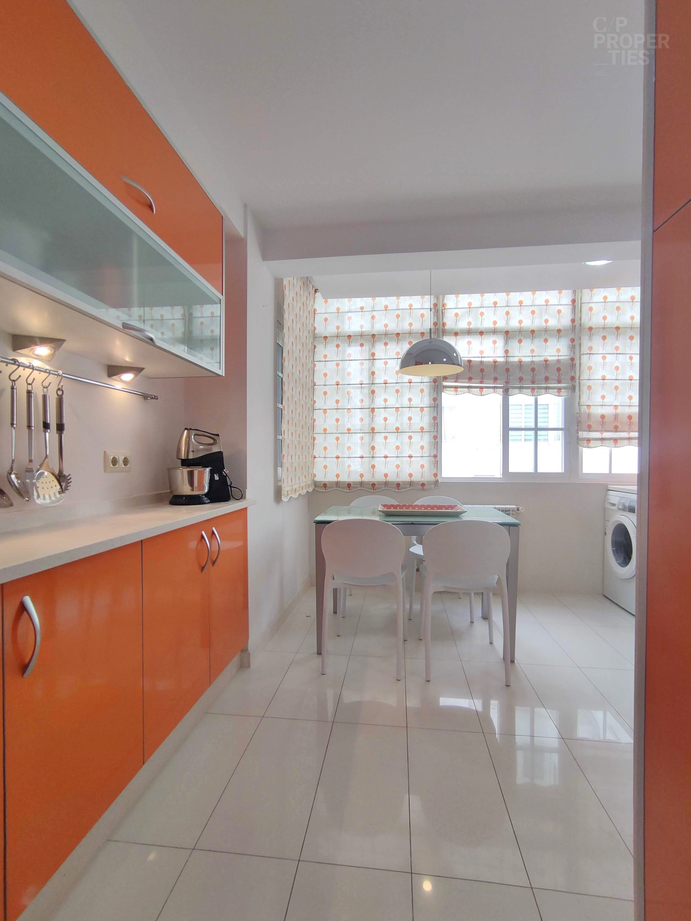 Dispone de 145 m2 construidos y 117 m2 útiles, distribuidos en estancias amplias y cuadradas. Cuenta con cuatro dormitorios independientes con armarios; dos cuartos de baño con platos de ducha; un salón comedor amplio y luminoso con salida a una terraza cubierta, y una cocina grande muy bien organizada y funcional, totalmente amueblada y equipada con electrodomésticos.