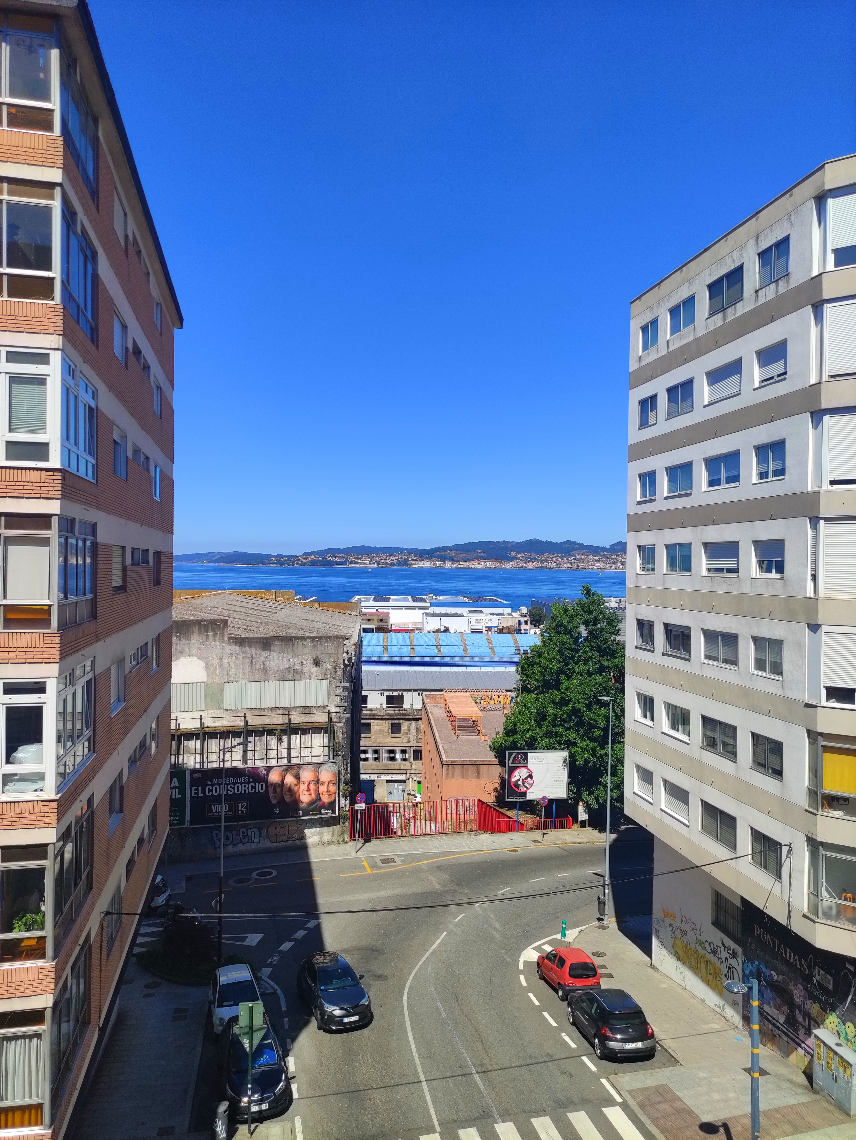 Situada en calle Torrecedeira, muy próxima caminando al centro de la ciudad y con todo tipo de servicios a su alcance. Se encuentra en una cuarta planta exterior y cuenta con una terraza cubierta en galería desde donde se puede apreciar un trocito de la ría de Vigo.