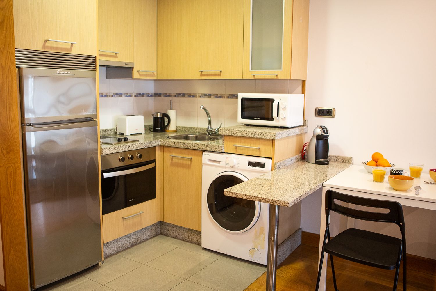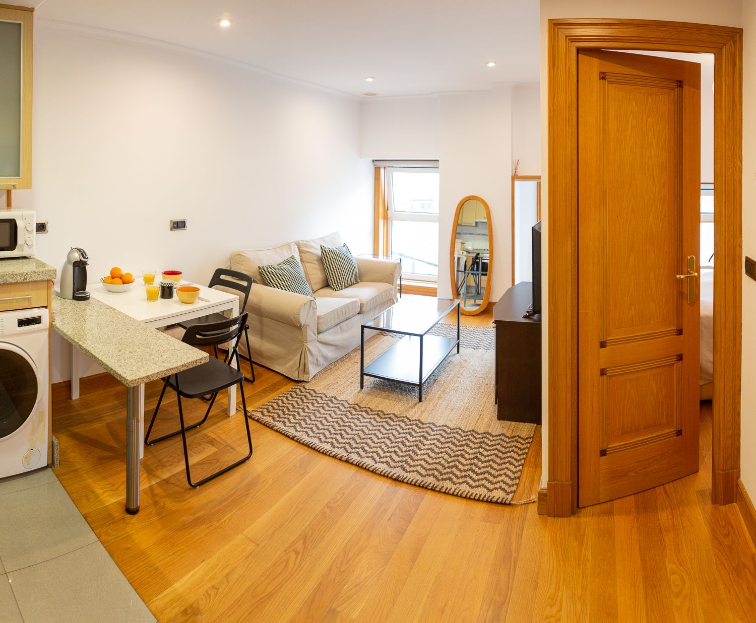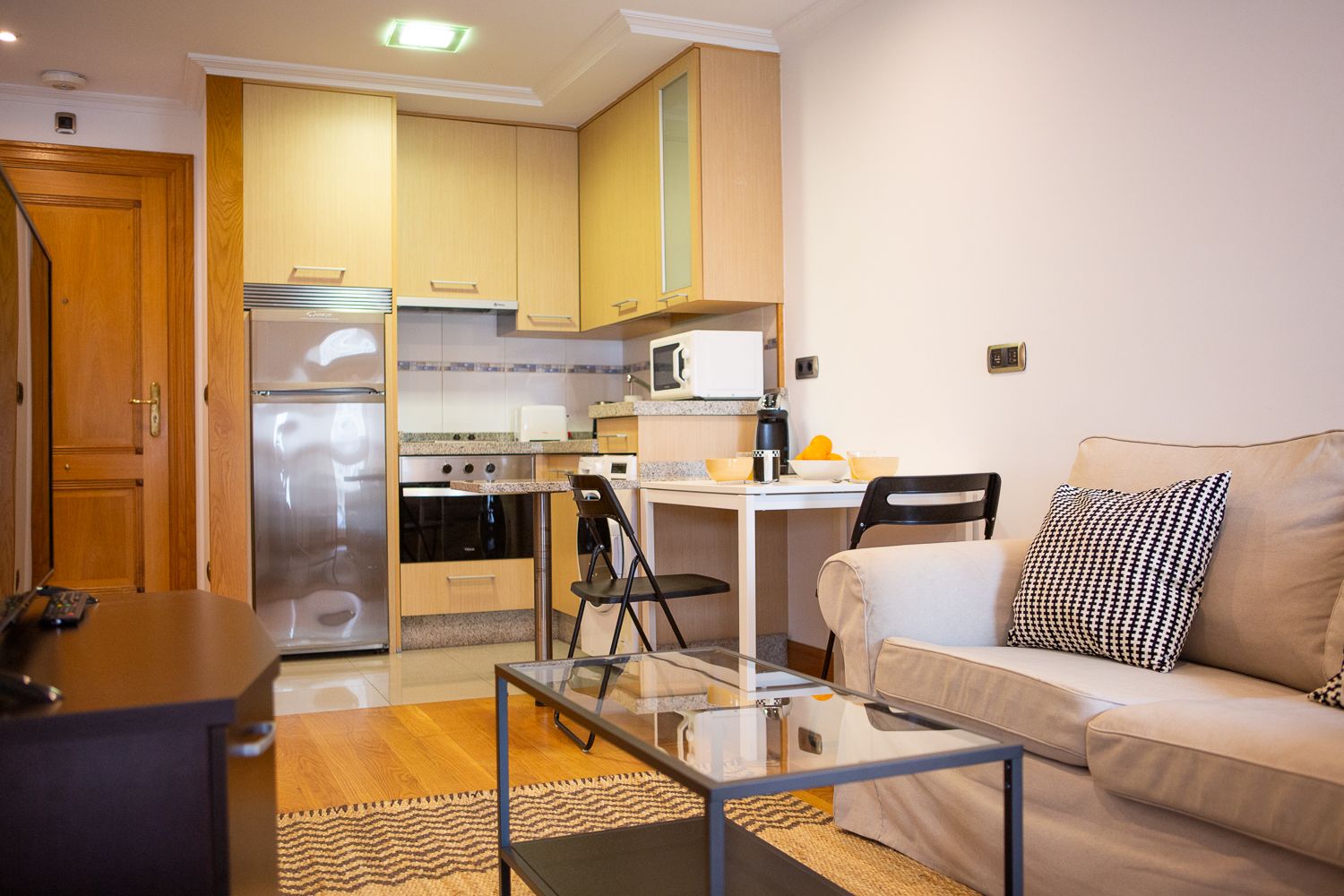 Dispone de 44 m2 construidos, distribuidos en un amplio salón comedor, luminoso y con la cocina integrada totalmente amueblada y equipada; un dormitorio independiente con armario empotrado de madera, y un cuarto de baño con plato de ducha.
